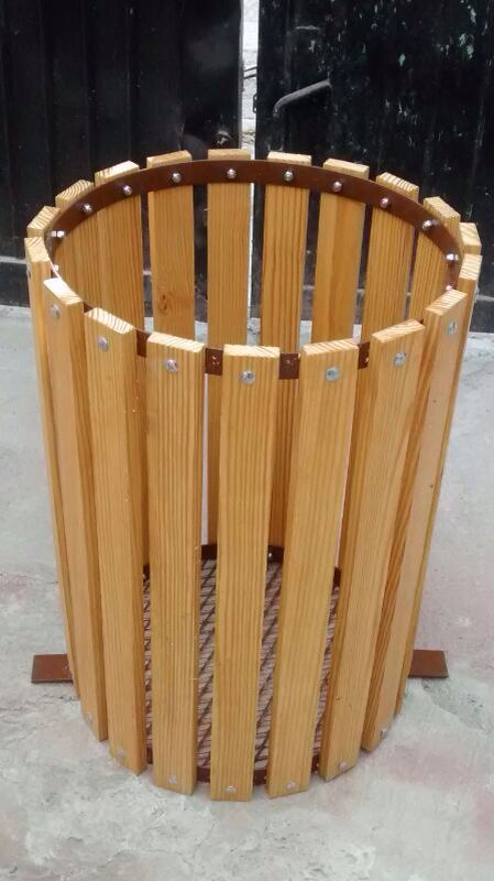 Bote para basura para parques ecológico modelo ECO-001, estructura de acero circular, fondo malla perforada, anclas para finar al piso