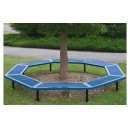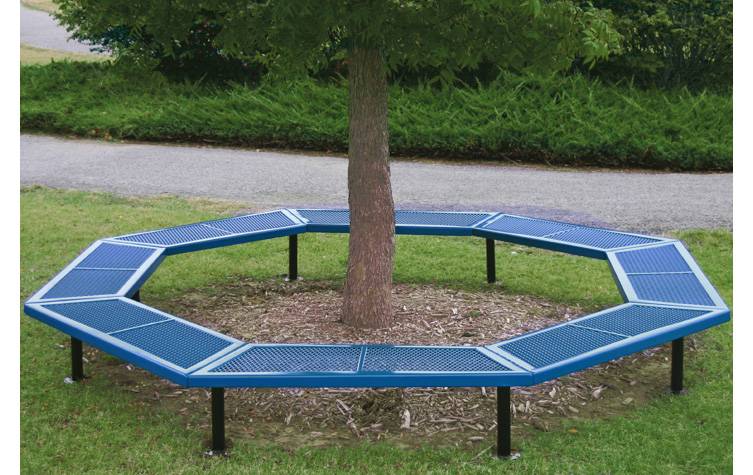 Bancas estilo geométrico se han diseñado específicamente para permitir sentarse alrededor de objetos fijos, tales como árboles, jardineras y fuentes.