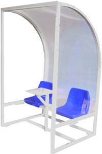 Banca Acero, Arbitro suplente, con dos asientos platicos y paleta de documentos, medida 1.30 m altura 1.70 m fondo 80 cm