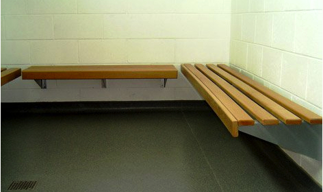 Voladiza, soportada por unas mensulas de acero, tablon de madera tratada