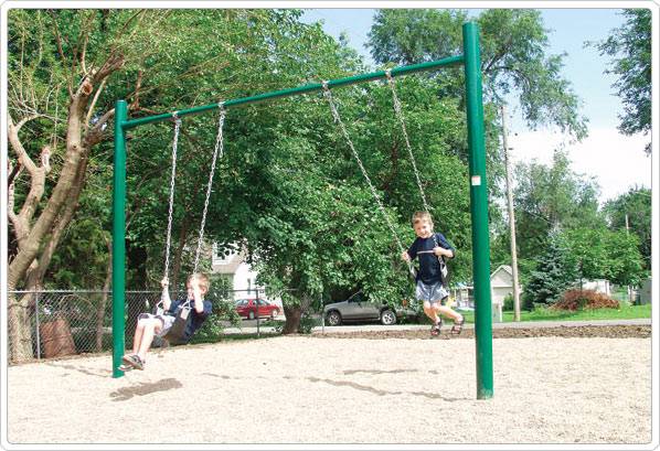La Cadena será galvanizado en caliente 4 / 0 eslabón de la cadena. Diámetro del material es 0.218pulgadas.Nominal dentro de las dimensiones enlace 1.29 "x 0.38" con un límite de carga de trabajo de 335 Kg.Asientos de columpio, son de de 16 cm ancho x 60 cm de goma moldeada con inserciones de chapa de acero.y revestimiento de zinc. S-ganchos será de 3 / 8 "OD, 3" recubierta de zinc a largo
