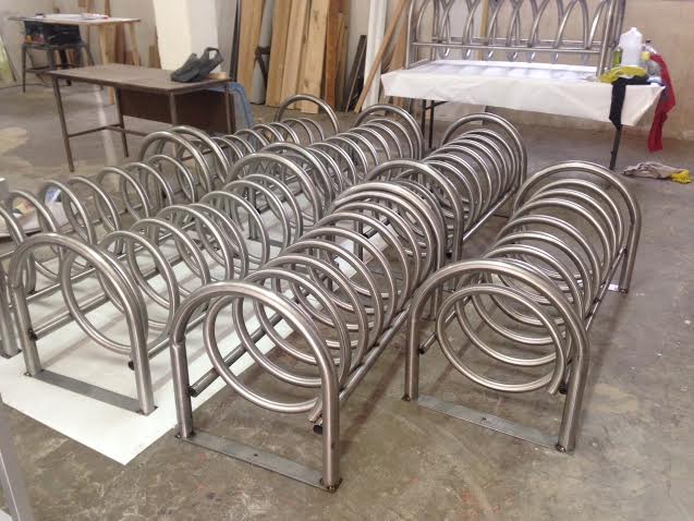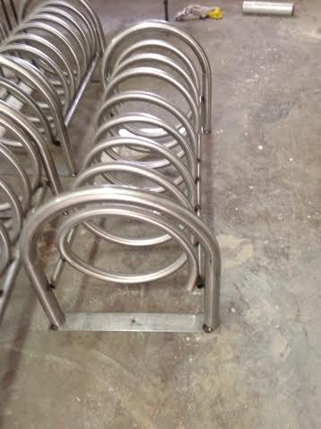 Estacionamiento para bicicletas fabricado en forma de espiral tubo acero inox 1.5" para 5 bicicletas, con soportes