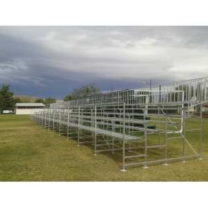 Grada Aluminio 12 m x 4 Lineas Altaasiento y piso con barandal malla ciclonica, estructura ba se de acero PTR2 EscalerasPasillo
