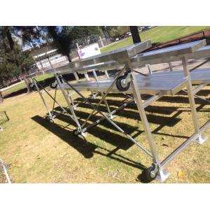 Grada aluminio en soportes, asientos y piso, 4 m x 3 filas de asiento doble piso de aluminio Llanatas para transportarlas Medida altura