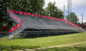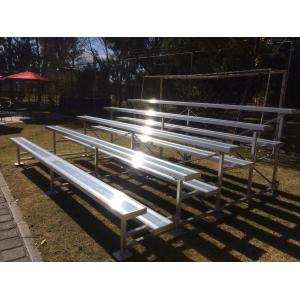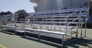 GRADA ALUMINIO 4M X 5 LINEAS DE ASIENTOS SIN BARANDAL CON LLANTAS, ESPECIAL PARA CAMPOS DEPORTIVOS QUE REQUIEREN MOVER CONSTANTEMENTE LA GRADA Y