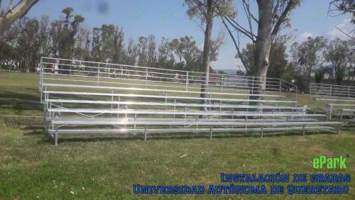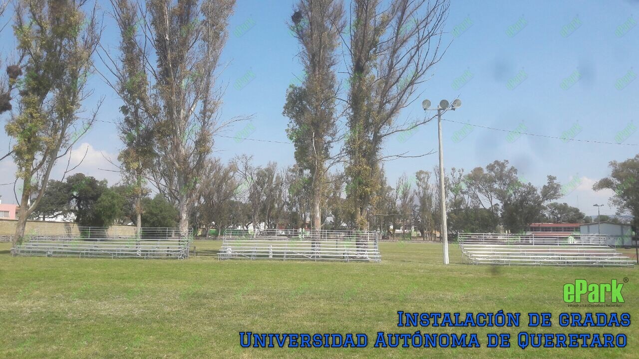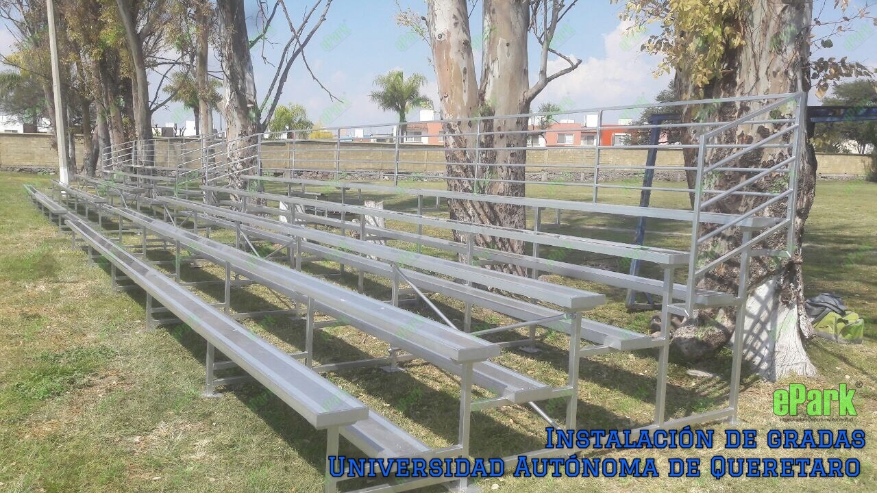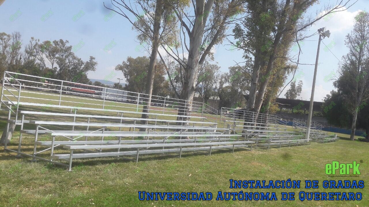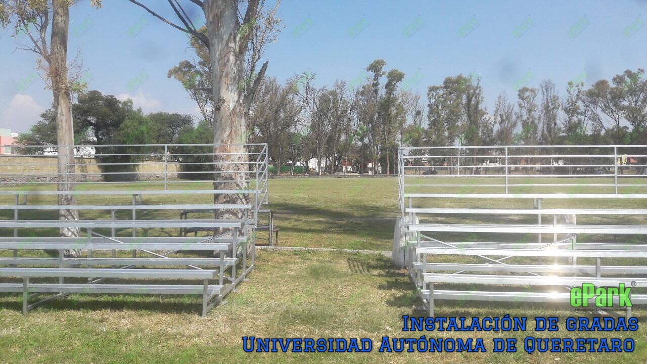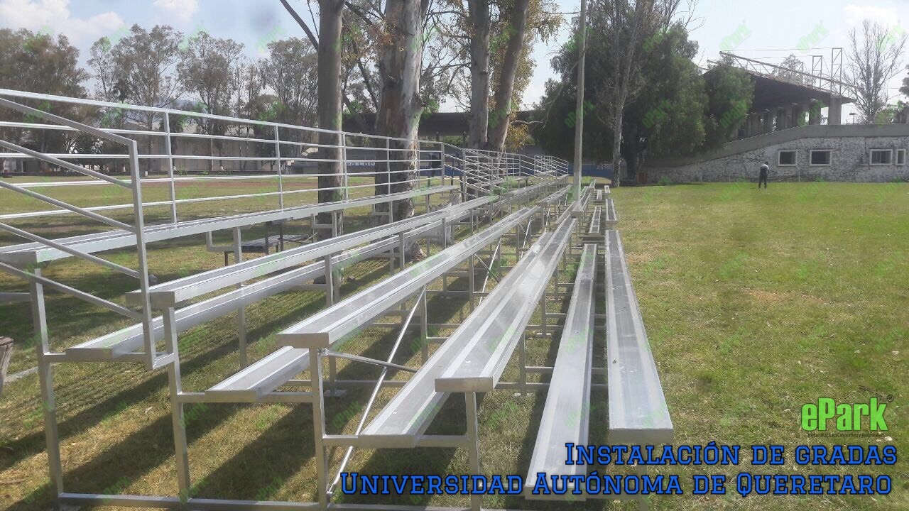Participamos en la instalación de Gradas EPark en Campo de Futbol Americano UAQ- Universidad Autónoma de Queretaro a nivel de cancha