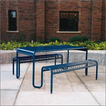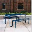 Mesa picnic de acero, con preparación par sombrilla opcional, fabricación en acero, lamina perforada, lamina calibre 14, acabado galvanizado en frió, y pintura automotriz con poliester anticorroción