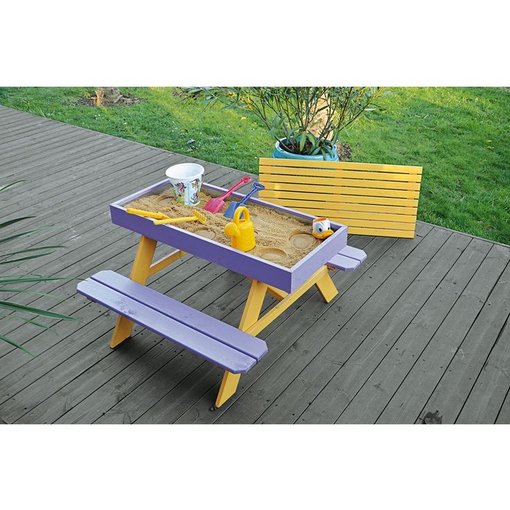 Mesa picnic para niños, fabricado en madera de pino para exterior, con cajon para arena