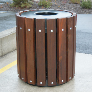 Recipiente de basura ecologico, fabricado en madera tratada para resistir las inclemencias del tiempo, medida 70 cm de altura x 40 cm , cubierto con tablones de madera pino americana
