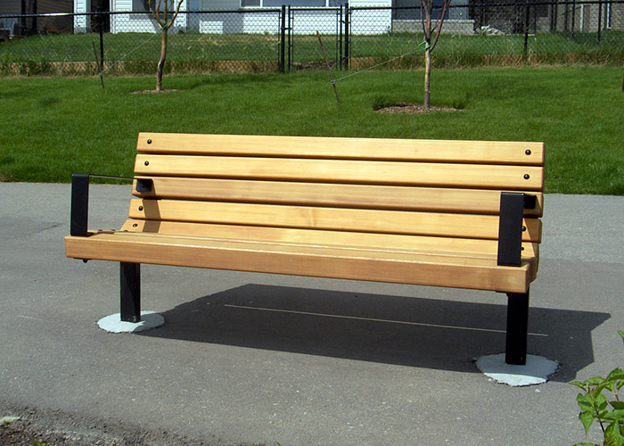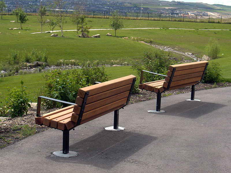 Banca fabricada con acero galvanizado el soporte, y barrotes de madera 3· x 3" de pino, tratada con lacas y barinices especiales que evitan hongos y moho