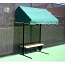 Banca de Tenis para cancha de tenis modelo BT03medida 1.6 m estructura de acero, fabricado en polin 3\", ba se triangular de acero, madera tratada para la intemperie, altura 1.80 m, fondo 1 m ya con la ba se, asiento fondo 50 cmTecho fabricado con polyester o malla sombra