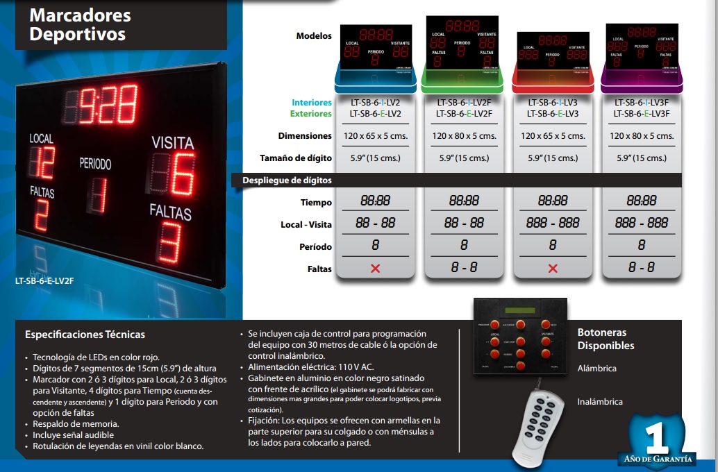 Marcador deportivo, cuatro modelos a seleccionar