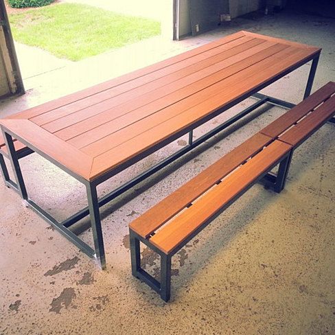 MESA PICNIN ESTRUCTURA DE ACERO, MESA Y BANCA DE TABOLON DE 1 1/2 MADERA DE PINO