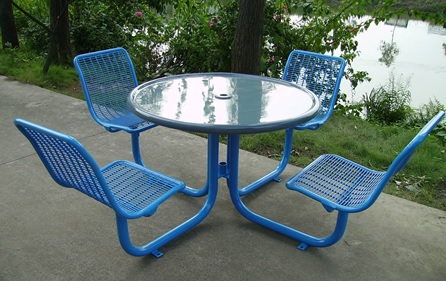 Mesa de picnic metalica con 4 asientos y respaldo de malla,